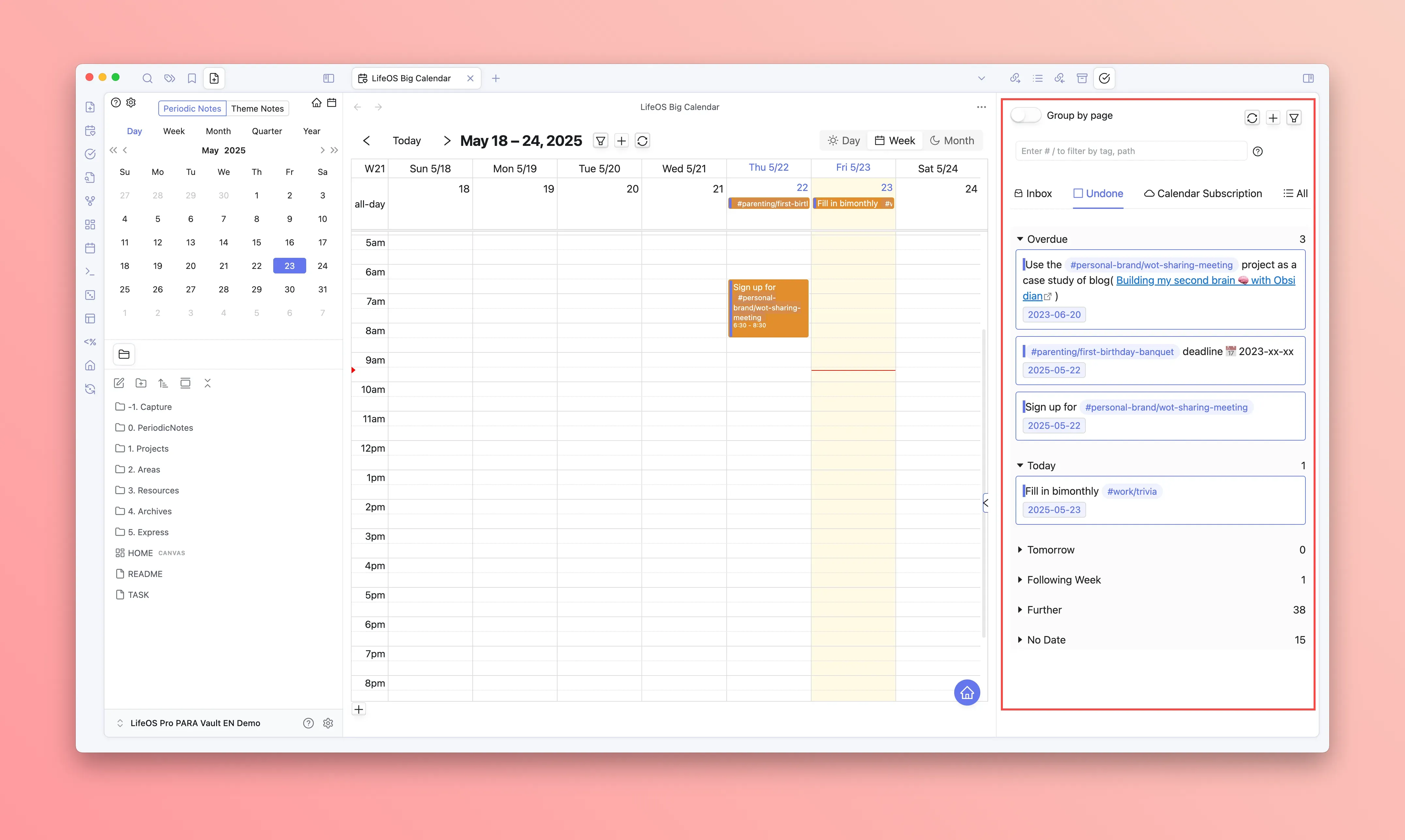 Permanent sidebar task management, which can also be dragged to the big calendar for schedule planning!