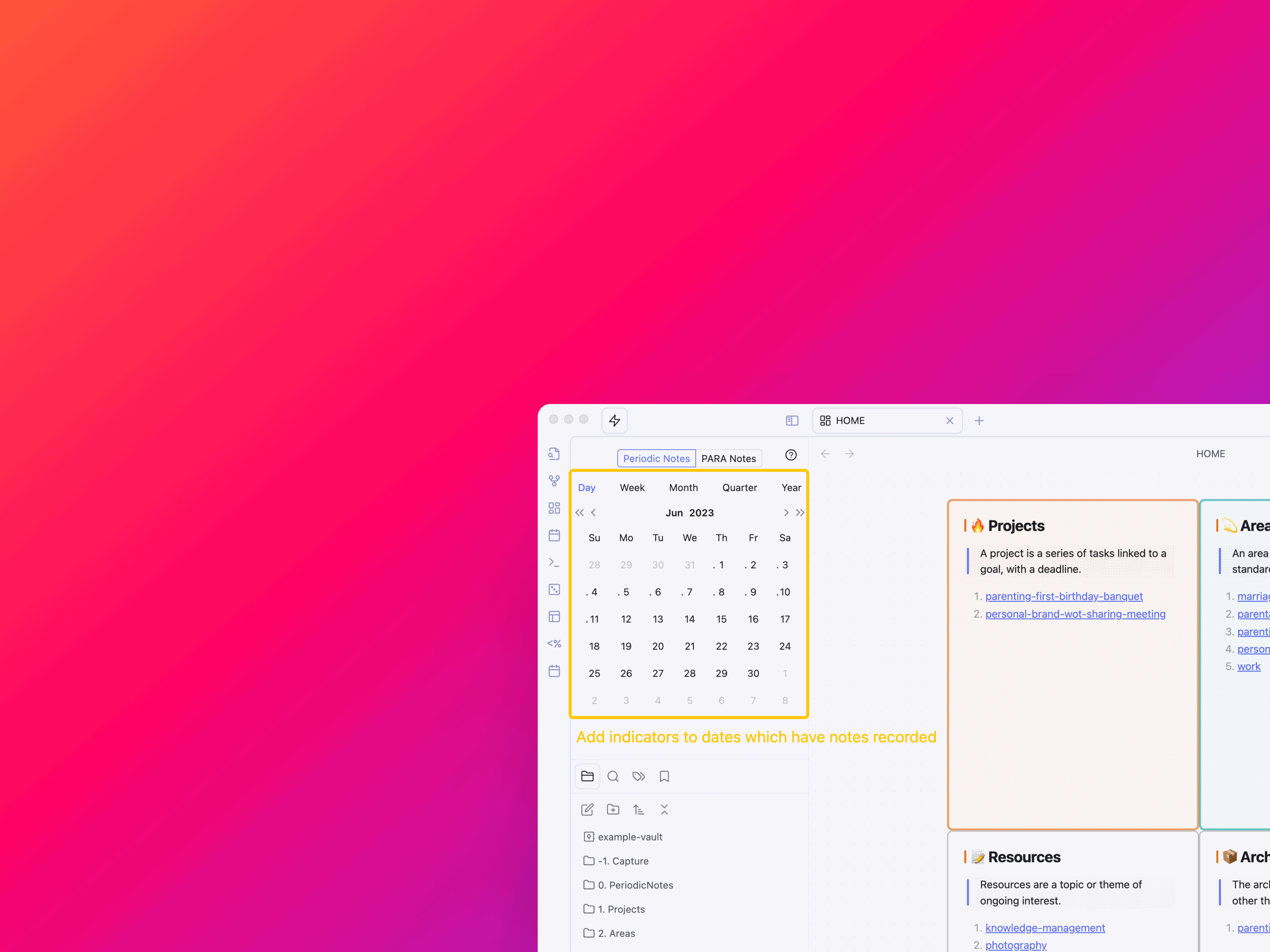 • PARA index file can be matched as a folder of the same name, which is convenient to work with the folder notes plugin
