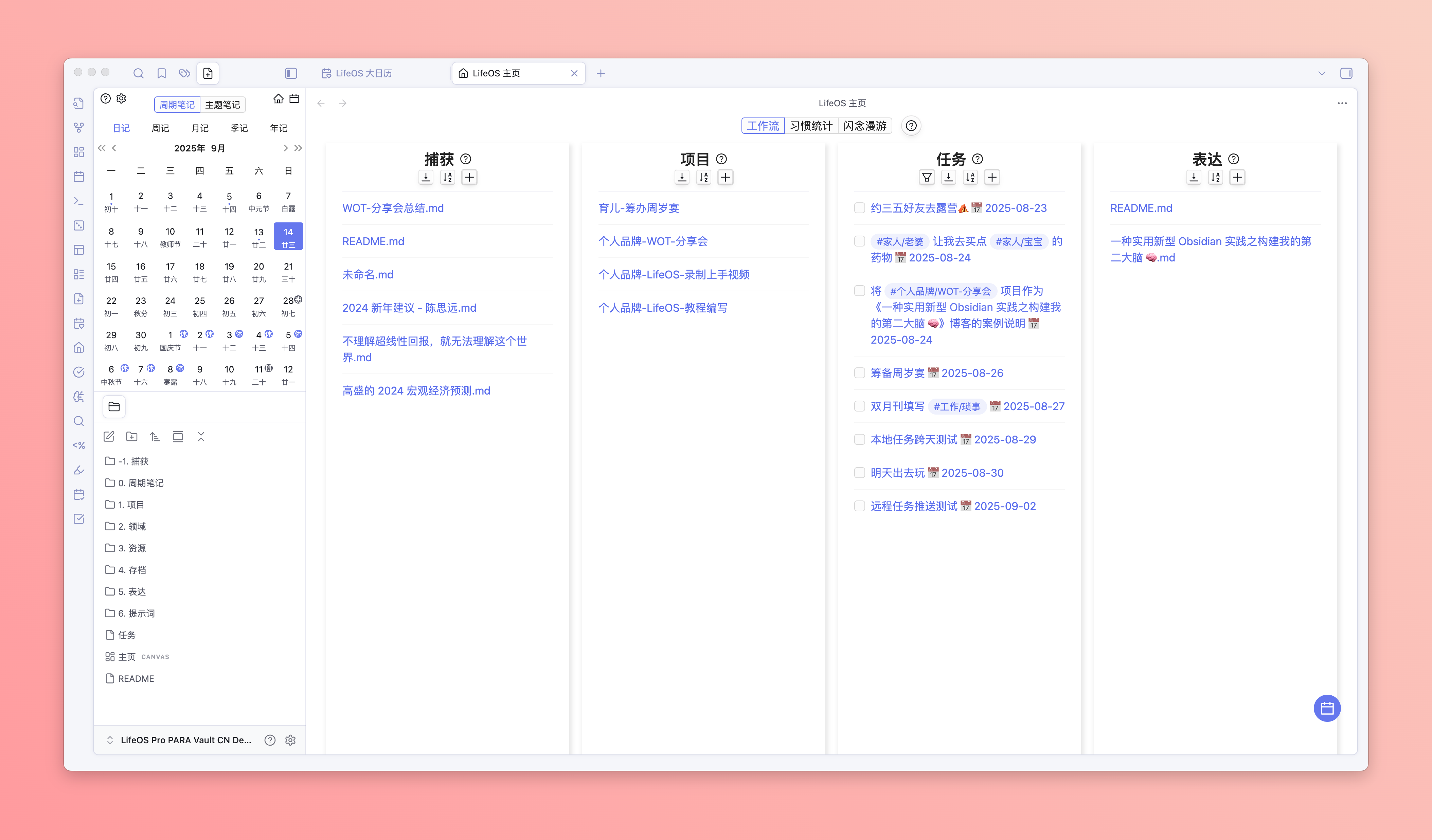 提供 Obsidian 下最佳的 PARA 实践,致力于成为你的第二大脑