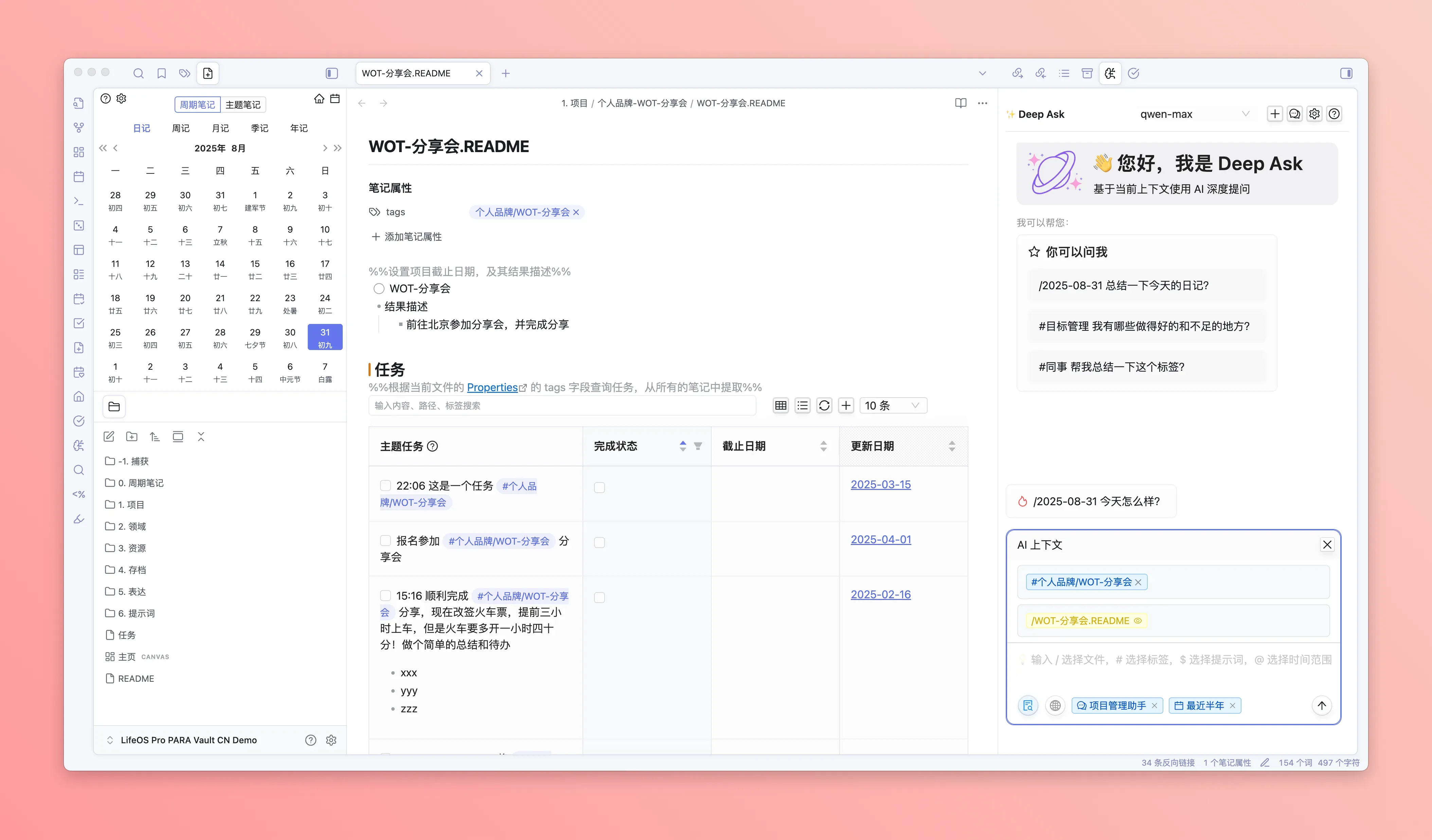 简单、有效、好用的 PARA 笔记模版,配合周期笔记和 AI 增强,让知识管理和任务管理更轻松