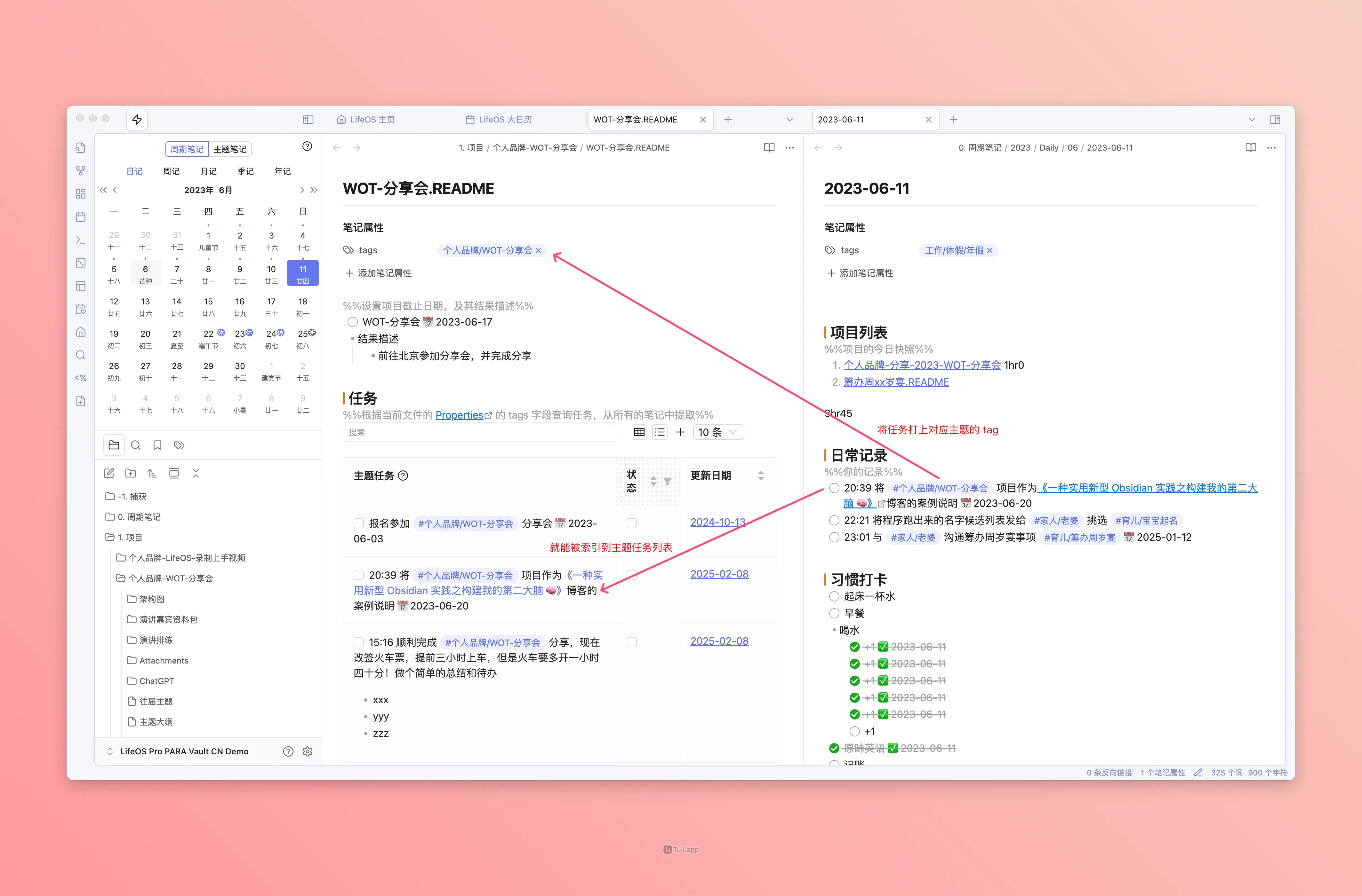 LifeOS 基于 Obsidian 打造的人生管理系统,它是一个简单、有效、好用的示例库,同时它拥有一个专用插件,也叫做 LifeOS,让作者通过编程的方式,为 LifeOS 示例库提供增强功能!