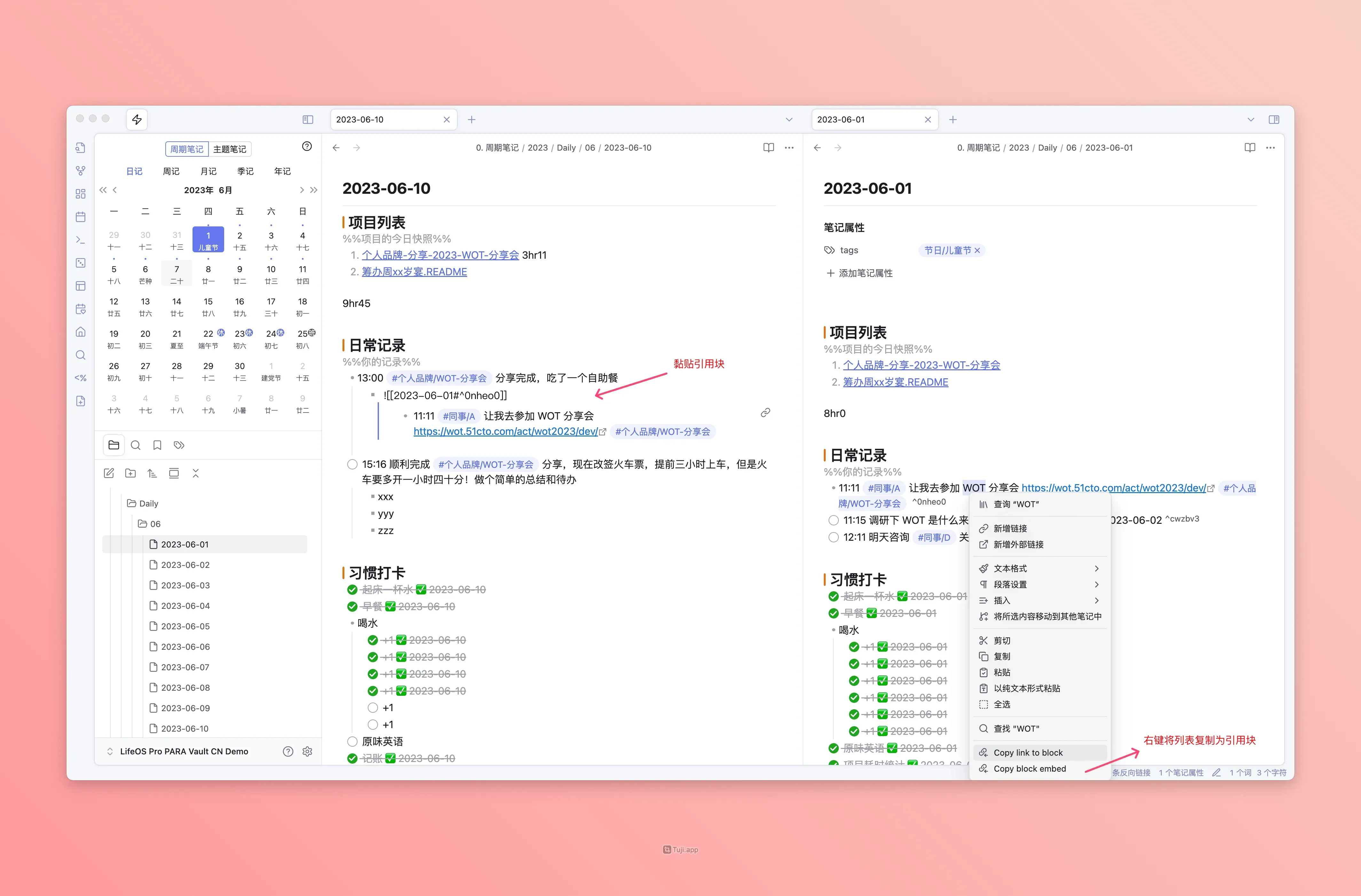 推荐一个将文件块轻松复制为 ![[文件名#^id]] 的插件:Copy Block Link