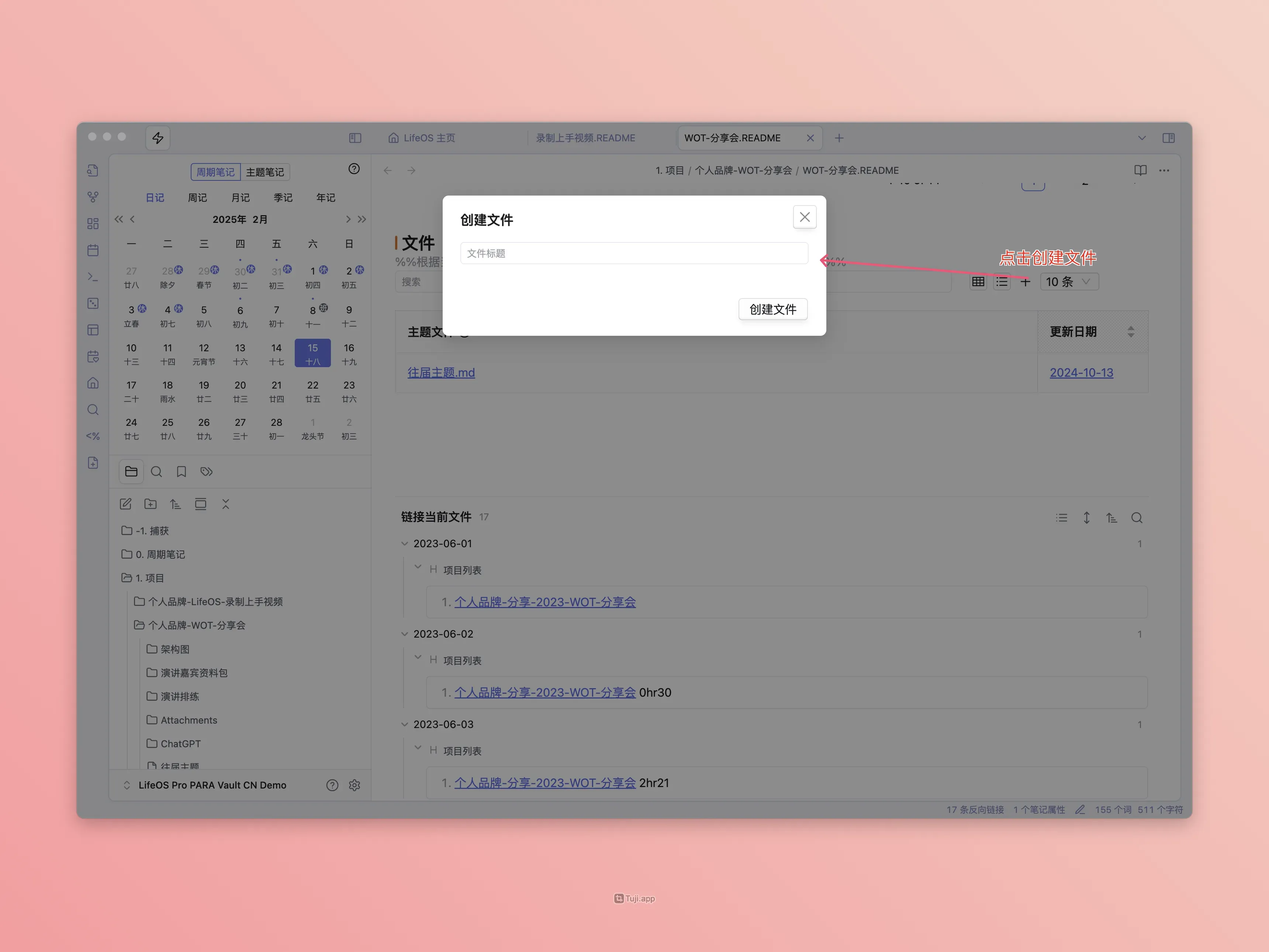 - 创建功能,让你一键即可创建当前主题的任务、闪念、文件!