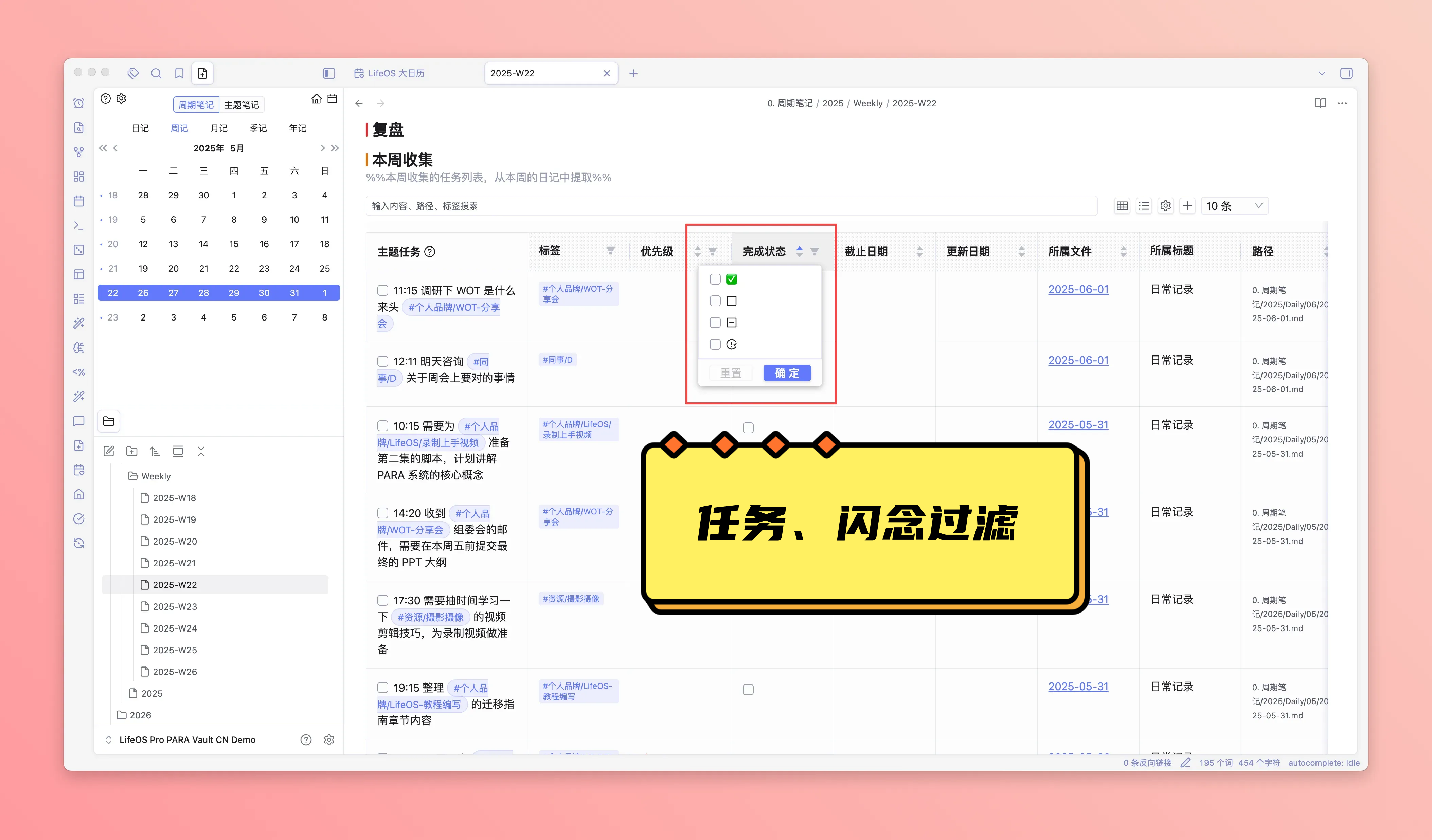 不仅如此,周期笔记中的任务收集和任务完成列表也全面支持这些新功能!想要找到某个特定的任务或记录?只需几秒钟!⏱️