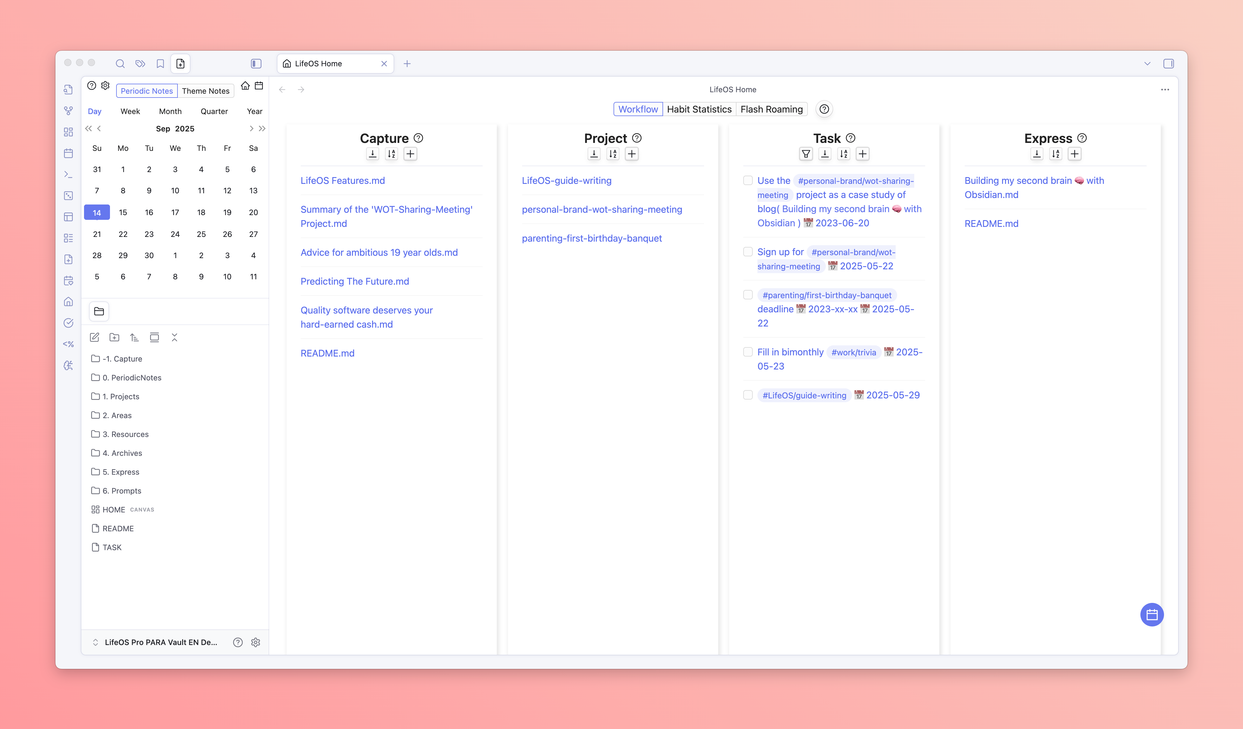 Provides the best PARA practice in Obsidian, committed to becoming your second brain