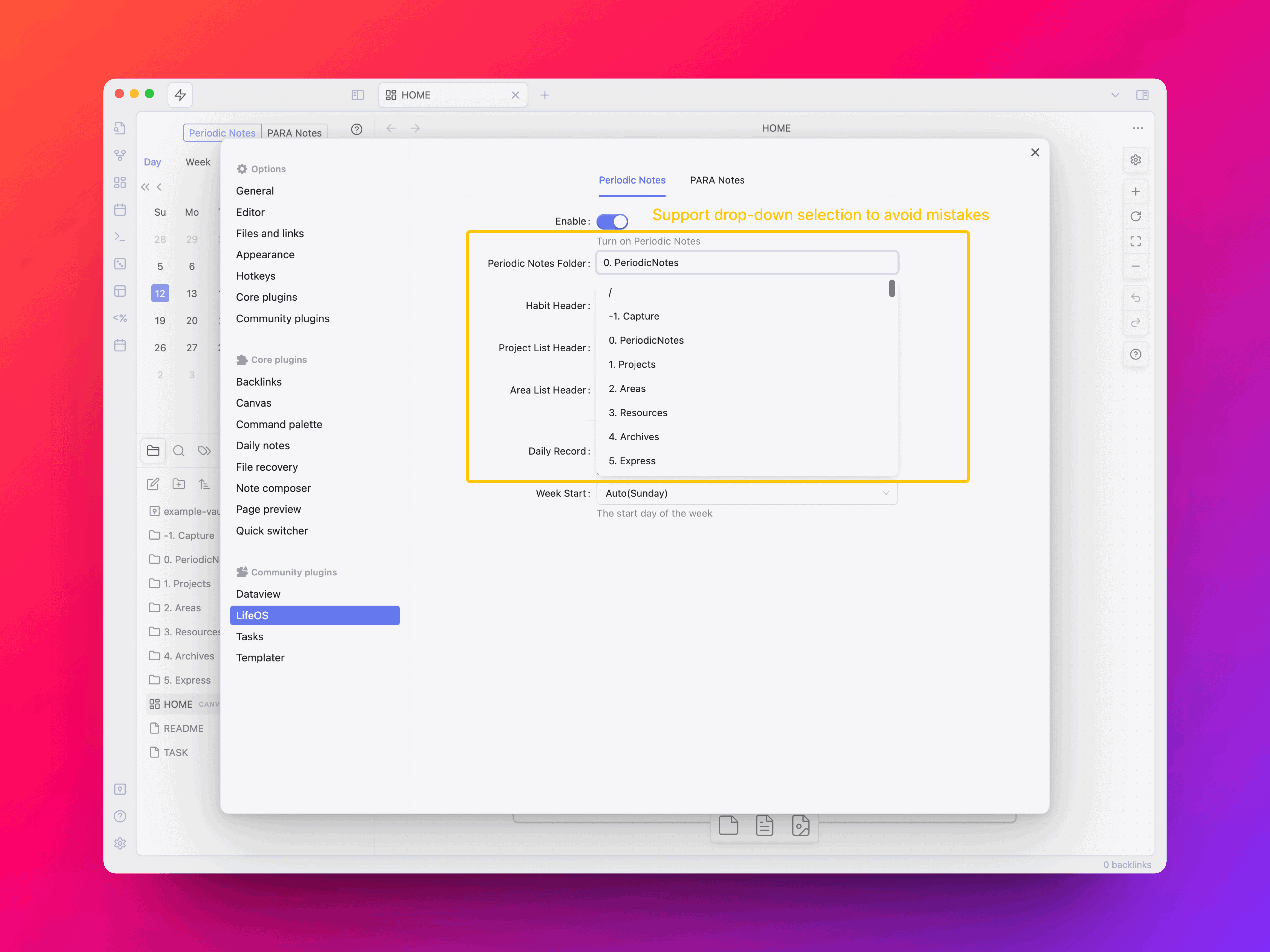 • PARA index file can be matched as a folder of the same name, which is convenient to work with the folder notes plugin