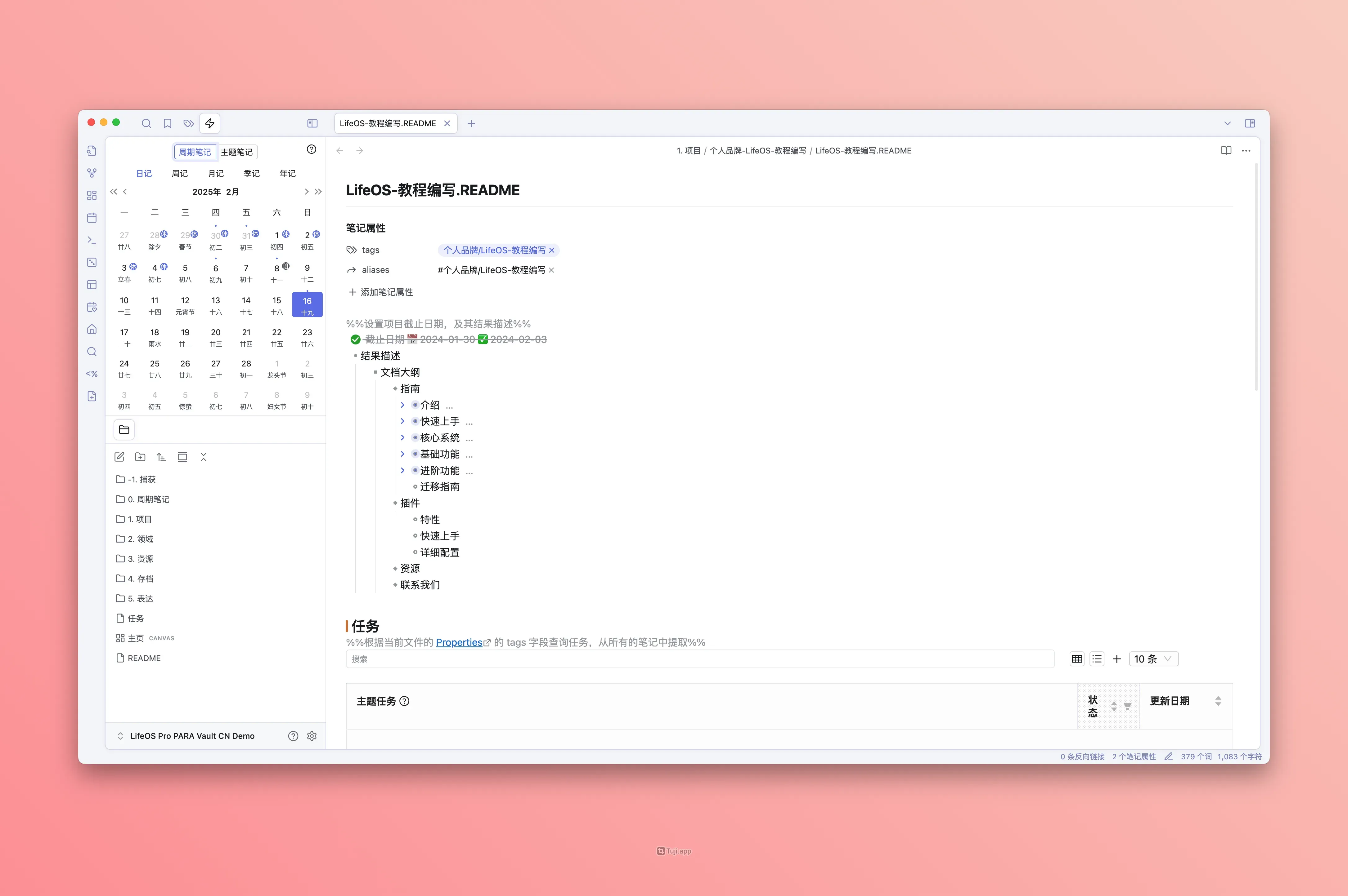 如何使用 Obsidian 实践项目管理?此处以『编写 LifeOS 教程』项目为例。