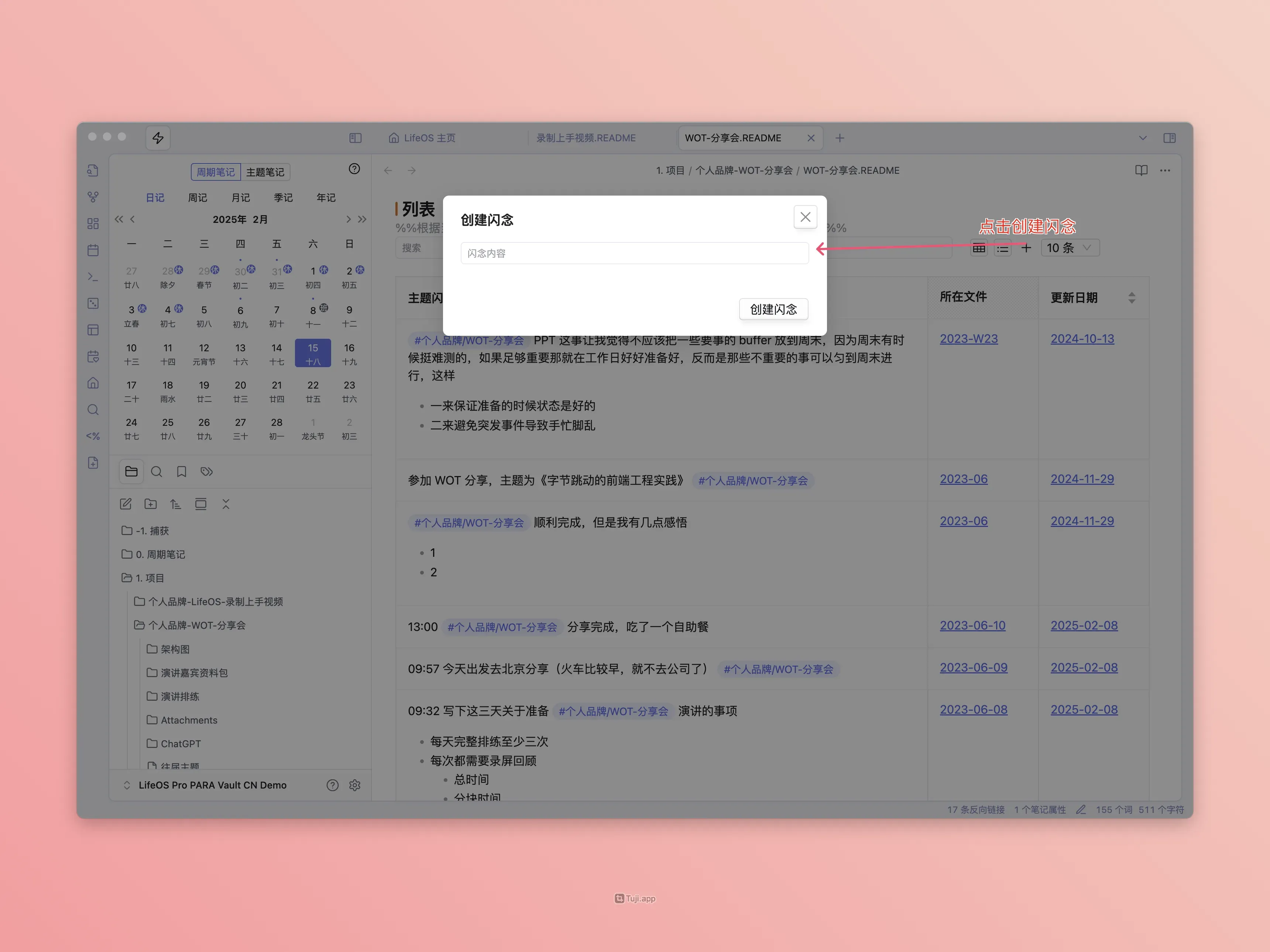 在笔记中创建『主题任务』、『主题闪念』、『主题文件』