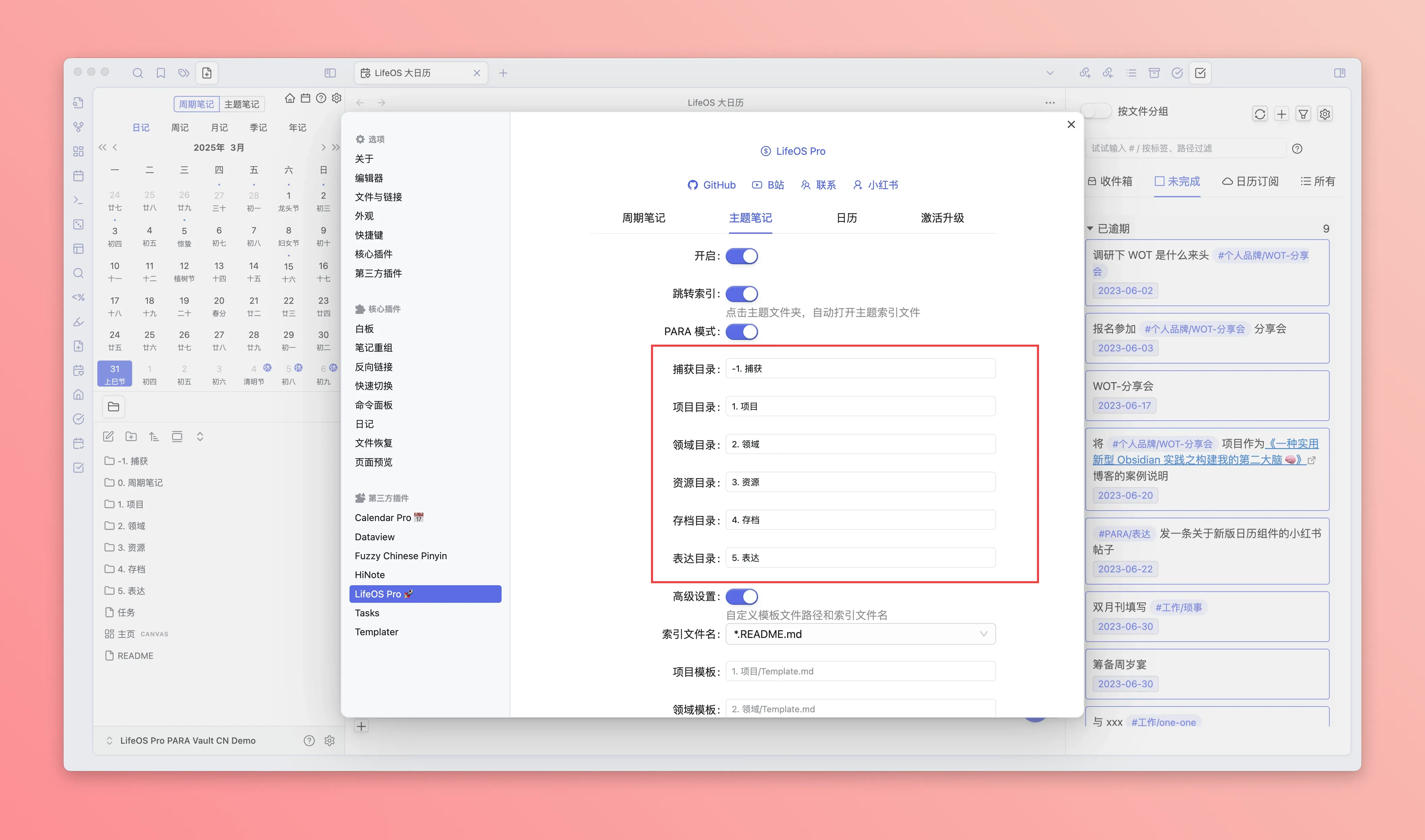 参考下图,配置你的周期笔记所在目录、以及各个模块的标题
